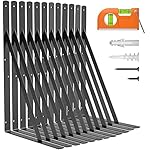 LuckIn 12-Pack Heavy Duty Shelf Bracket 18 Inch, Fit for 18 20 24 Inch Floating Shelves, L Brackets with 90 Degree Triangle, 250 LBS Max Load, Mounting Hardware Included, Black