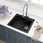 Home Shop Farmhouse Sinks Farmhouse Kitchen Sinks KRAUS Quarza 25-inch Drop-In/Undermount Single Bowl Granite Kitchen Sink in Black, KGD-441BLACK