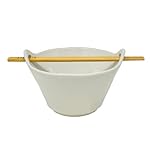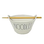 You will receive one glossy off white color ceramic individual size bowl with black letters that spell the word NOODLES and two wood chopsticks that have RAE DUNN embossed on the end of each. Bowl has holes to put your chopsticks through.