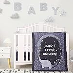 This is a space elephant theme crib bedding set for boys and girls .The sky is full of stars, cute elephant looks up at the deep sky as if thinking of something.The fitted sheet has elastic on it, it can be fixed on matress very well; The long drop crib skirt can keep dust away. This crib sets for boys create a warm and comfortable room for your baby.