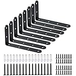 GREAT AMOUNT PACKAGE FOR MOST AFFORDABLE PRICE. the brackets package include 12 pieces black L brackets and 72 screws. The size of our corner brace is 125X75mm(5 InchX3 Inch) and comes with all screws and hardwares that are needed to stall a bracket. Our package include more brackets while cost less which is perfect choice for you.