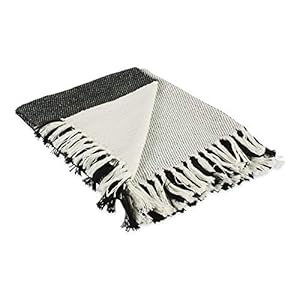 DII Four Square Cotton Woven Throw, 50×60 with 3″ Fringe, Black/White...