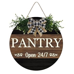 Wooden Pantry Sign Wall Art Front Door Porch Decorations, Round Rustic Wood Hanging Sign f...