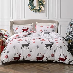 MILDLY Christmas Duvet Cover Set – 100% Brushed Microfiber Snowflake Reindeer Printe...