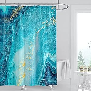 natu2eco Colourful Marble Shower Curtains for Bathroom Sets Fabric with 12 Hooks Watercolo...
