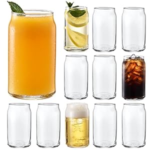 Rainforce Beer Can Glass, Can Shaped Glass Cups 16 oz, Glass Cups Set Of 12, Beer Glasses ...