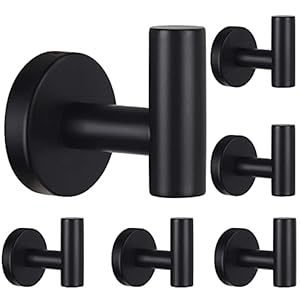 Homagic Bathroom Towel Hooks Wall Towel Hooks 6 Pack Matte Black Coat Hooks, Heavy Duty Ro...