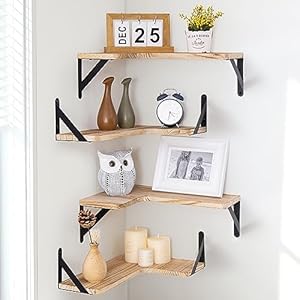 Corner Floating Shelves, Corner Wall Shelves Set of 4, Wall Mounted Corner Storage Display...