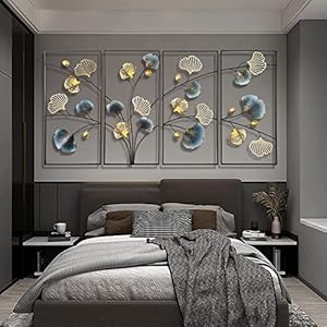Mroinss 4 Pcs Metal Wall Art Decor, Large 3D Handmade Ginkgo Leaf Metal Wall Sculpture wit...