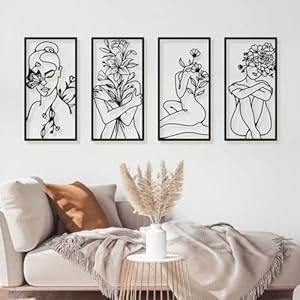 Bakovity Black Metal Wall Art, Abstract Woman Wall Decor, Minimalist Flower Line Wall Deco...