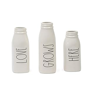 Rae Dunn Ceramic Milk Bottle/Vase Set of 3 Love Grows HERE...