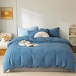 【Solid Blue Design】: Modern lake blue comforter set for women men grayish blue bedding comforter sets cotton 3pcs blue bed comforter queen set. The end to end sewn through concealing quilting ensures that the microfiber doesn’t shift, so you’ll never have any cold spots on the bed.
