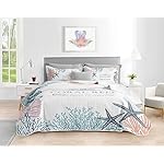 Coastal Bedding King Size Coastal Quilt with 2 Shams, Nautical Bedding Beach Comforter Sets Ocean Bedspreads Coastal Coverlet Summer Bedding, 96”x106”