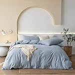 Home Shop Farmhouse Bedding Blue Farmhouse Bedding JIYUAN 100% Washed Cotton Duvet Cover Set Comfy Simple Style Soft Breathable Textured Durable Linen Feel Bedding for All Seasons Queen Size,Solid Light Blue