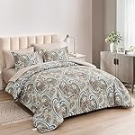 【Unique Paisley Design】: The boho comforter set with unique paisley design add a elegant vibe to your bedroom. The front side are blue and brown paisley print, and the back is brown diamond pattern. Your bed will look sophisticated and feel soft in each intricate paisley and flower pattern.