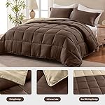 Homelike Moment Twin Comforter Set Brown, Lightweight Reversible Comforter Twin Size Bed Sets, Soft Down Alternative Bed Comforter All Season 2 Pcs Twin Bedding Set with 1 Sham Brown/Beige