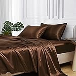 MR&HM Satin Bed Sheets, Twin XL Size Sheets Set, 3 Pcs Silky Bedding Set with 15 Inches Deep Pocket for Mattress(Twin XL, Brown)