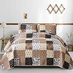 Mybedsoul Khaki Quilt Set King Size Quilt Bedding Set Brown Plaid,3 Pieces Patchwork Floral Patchwork Reversible Bedspread Coverlet Set for All Season,Soft Microfiber Bedding Set King 90″X104″