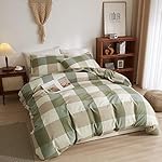 Bobode Green Plaid Duvet Cover Queen Size Cotton Grid Duvet Cover Set Full Buffalo Plaid Modern Checkered Bedding Sets with Zipper Closure&Corner Ties,Durable Easy-Care,Soft-No Comforter Insert