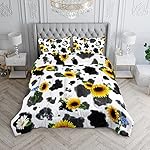 Home Shop Farmhouse Bedding Country Farmhouse Bedding BSNTHO Cow Print Comforter for Girls Twin Size,Sunflowers Kids Comforter Set,3pcs Printed Bedding Set Comforter with 2 Pillowcases,Soft and Lightweight,for All Seasons