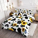 BSNTHO Cow Print Comforter for Girls Twin Size,Sunflowers Kids Comforter Set,3pcs Printed Bedding Set Comforter with 2 Pillowcases,Soft and Lightweight,for All Seasons