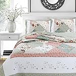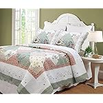 Home Shop Farmhouse Bedding Country Farmhouse Bedding Cozy Line Home Fashions Floral Real Patchwork Green Peach Scalloped Edge Country 100% Cotton Quilt Bedding Set, Reversible Coverlet Bedspread (Celia, King – 3 Piece)