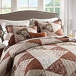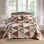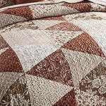 HoneiLife Queen Size 3 Piece Microfiber Quilt Set – Brown Triangle Pattern, 90×96 Inch