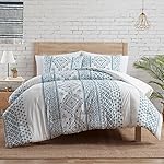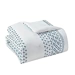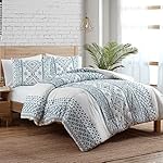 This blue and white comforter set boasts geometric patterned stripes to give your bed a boho-chic flair.