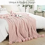 Chunky Knit Blanket with pom poms- Thick, Soft, Big, Cozy Throw Blankets for Couch, Bed, Sofa, Chair-50×60 Inches,Pink
