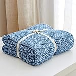 Longhui bedding Blue Knitted Throw Blanket for Couch, Soft, Cozy Machine Washable 100% Cotton Sofa Knit Blankets, Heavy 2.8lb Weight, 51 x 63 Inches, Blue and White Color, Laundry Bag Included