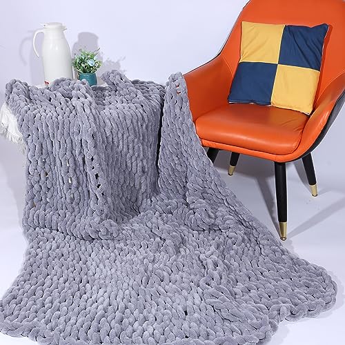 Spetime Cozy Chenille Chunky Knit Throw Blanket, Big Chenille Yarn Braided Crochet Throw Blanket: Handmade Comfort for Couch Bed Sofa (Grayish Blue, 50″x60″)