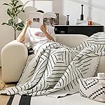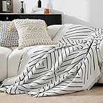 Sanguunhedo Chenille Throw Blanket, Reversible Use, Black and White, Modern Geometric Luxury Lightweight Blanket Throw Soft Cozy for Couch Bed Decor Travel Outside Living Small Fringe (70×50 inches)