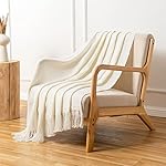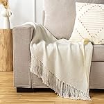 CozeCube Cream Throw Blanket for Couch, Boho Throw Blanket with Fringe Tassel, Lightweight Fall Throw Blanket for Bed, Living Room Outdoor, Gift, Off White, 60″x80″