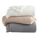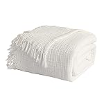 EMME Throw Blanket Muslin 100% Cotton Throw Blankets for Couch Breathable Gauze Blanket with Tassel All Season Soft and Lightweight Pre-Washed Cotton Blanket (White, 50″x60″)