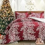 Christmas Bed in a Bag Burgundy Red Comforter Sheet Set 7 Pieces Queen Size All Season Tree Branch Soft Microfiber Bedding Set (1 Comforter 2 Pillow Shams 1 Flat Sheet 1 Fitted Sheet 2 Pillowcases)