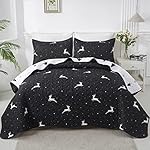 LAMEJOR Christmas Quilt Set Twin Size Black/White Reversible Reindeer/Christmas Tree Pattern Soft Lightweight Bedspreads Coverlet Holiday Season