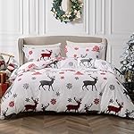 MILDLY Christmas Duvet Cover Set – 100% Brushed Microfiber Snowflake Reindeer Printed Winter Theme Comforter Cover Set