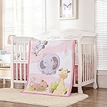 Make your baby girl’s nursery complete with this 3-piece crib bedding set featuring a cute jungle elephant theme.Your baby will love the softness and comfort of our bedding set and you will love the convenience of easy care.It is also a nice gift for baby shower or new mom.
