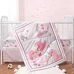 The Peanutshell 3 Piece Baby Crib Bedding Set for Girls – Newborn, Infant & Toddler Nursery Bed Set Decor with Fitted Crib Sheet, Dust Ruffle, Crib Comforter – Pink Elephant