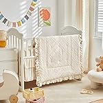 Tufted Ruffle Crib Bedding Set 3 Pieces Baby Boho Quilted Comforter with Fitted Sheet and Bed Skirt – Cute Ruffled Shabby Chic Baby Bedding Soft Blanket Design Cream White