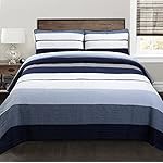 Cozy Line Home Fashions Tranquil Blue Gray Striped Boy 100% Cotton Reversible Quilt Bedding Set, All-Season Coverlet, Bedspread (Rendon, Queen – 3 Piece)