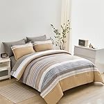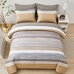 [Premium Soft Material]: Khaki stripe comforter full size crafted from 100% microfiber fabric with premium polyester filling, soft, fluffy,comfortable and light weight. Creating cozy and comfy sleeping environment, providing cloud-like feeling for you. Giving you superior softness and comfort all year round.