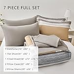 [Full Size Comforter Set]: You can get a 7-piece striped comforter set full size with 1 comforter(79”x90”),1 flat sheet(81”x96”),1 fitted sheet(54”x75”+16”),2 pillow cases(20”x30”),2 pillow shams(20”x26”). The khaki full stripe comforter may come wrinkled because of the vacuum sealed package, please put it in the sun and pat gently for fluffy.