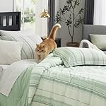 PLAID DESIGN: Upgrade your bedroom decoration with our plaid comforter set queen, which is designed in fresh green and white, endows it with classy and coziness, also coming with a stylish functional décor pillow. Fitted sheet is designed with a storage pocket, which is convenient and practical