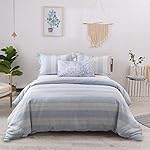 Merryfeel Linen Duvet Cover Set Queen Size,100% French Linen Yarn Dyed Stripe Bedding Set,3 Pieces(1 Duvet Cover with 2 Pillowshams)- Full/Queen- Blue Stripe Duvet Cover Set Luxury