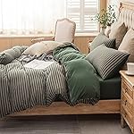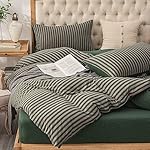Home Shop Farmhouse Bedding Farmhouse Stripe Bedding PURE ERA Jersey Knit Duvet Cover Set 100% T-Shirt Heather Cotton Super Soft Comfy Classic Striped Design, with Zipper Closure, Forest Green Stripe, Queen