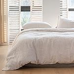 Bedsure Duvet Cover Queen Size – 100% Cotton Reversible Morandi Color Striped Cover Set with Zipper, Soft & Breathable Bedding Set, (3 Pieces, 1 Duvet Cover 90″x90″ and 2 Pillow Shams 20″x26″)