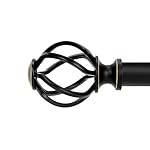QITERI Curtain Rod 38″-72″ for windows 2 Pack with Twisting Cage Finials, 3/4″ Adjustable Single Window Rod 38″-72″,Black Drapery Rod of Window Treatment,2 Pack