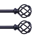 QITERI Curtain Rod 38″-72″ for windows 2 Pack with Twisting Cage Finials, 3/4″ Adjustable Single Window Rod 38″-72″,Black Drapery Rod of Window Treatment,2 Pack