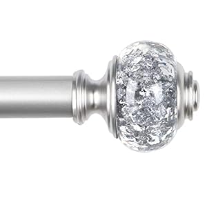 USFOOK Curtain Rods 32 to 86 Inch(2.6-7.2ft), Telescoping Splicing Drapery Rods for Windows 54 to 82 Inch, Decorative Translucent Finials, Light Silver